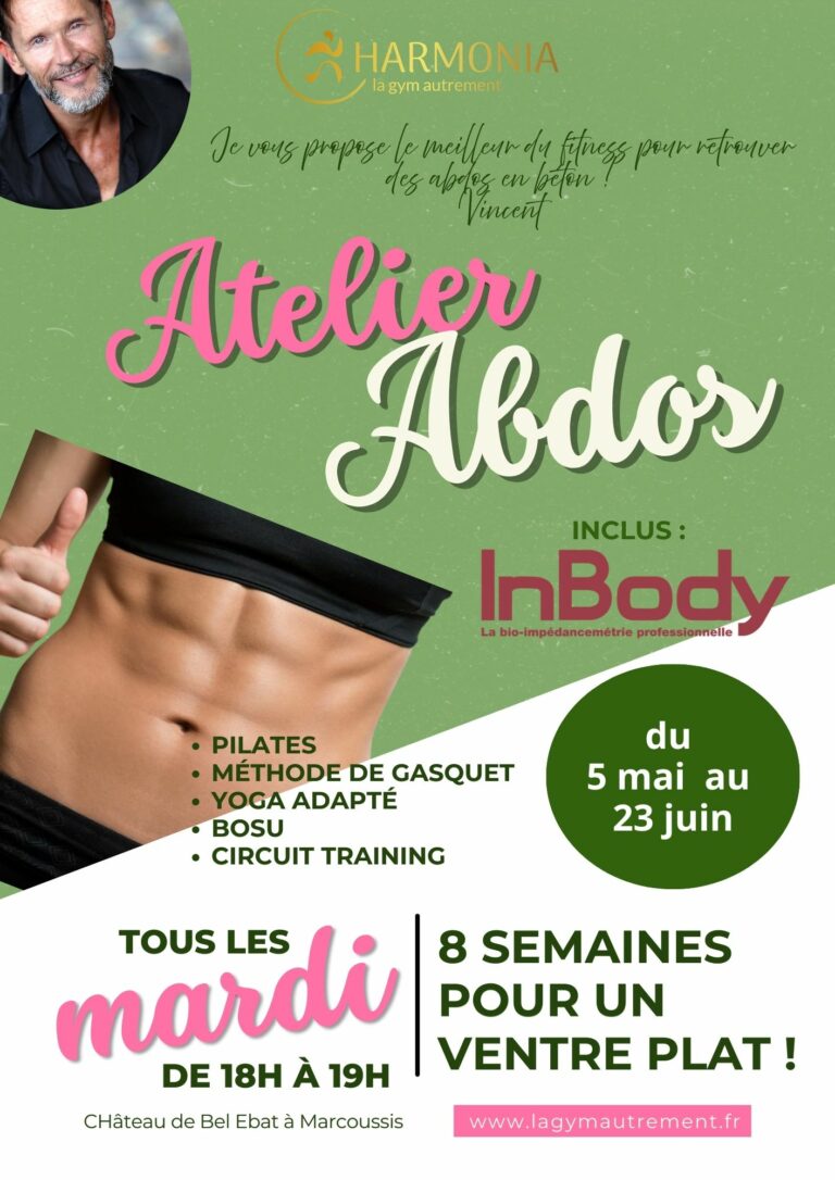 Vous allez intégrer pendant 8 semaines toutes les techniques de remise en forme pour renforcer votre sangle abdominale, affiner votre silhouette et retrouver en ventre plat : Pilates, méthode de Gasquet, Yoga adapté, Circuit training, Bosu, …